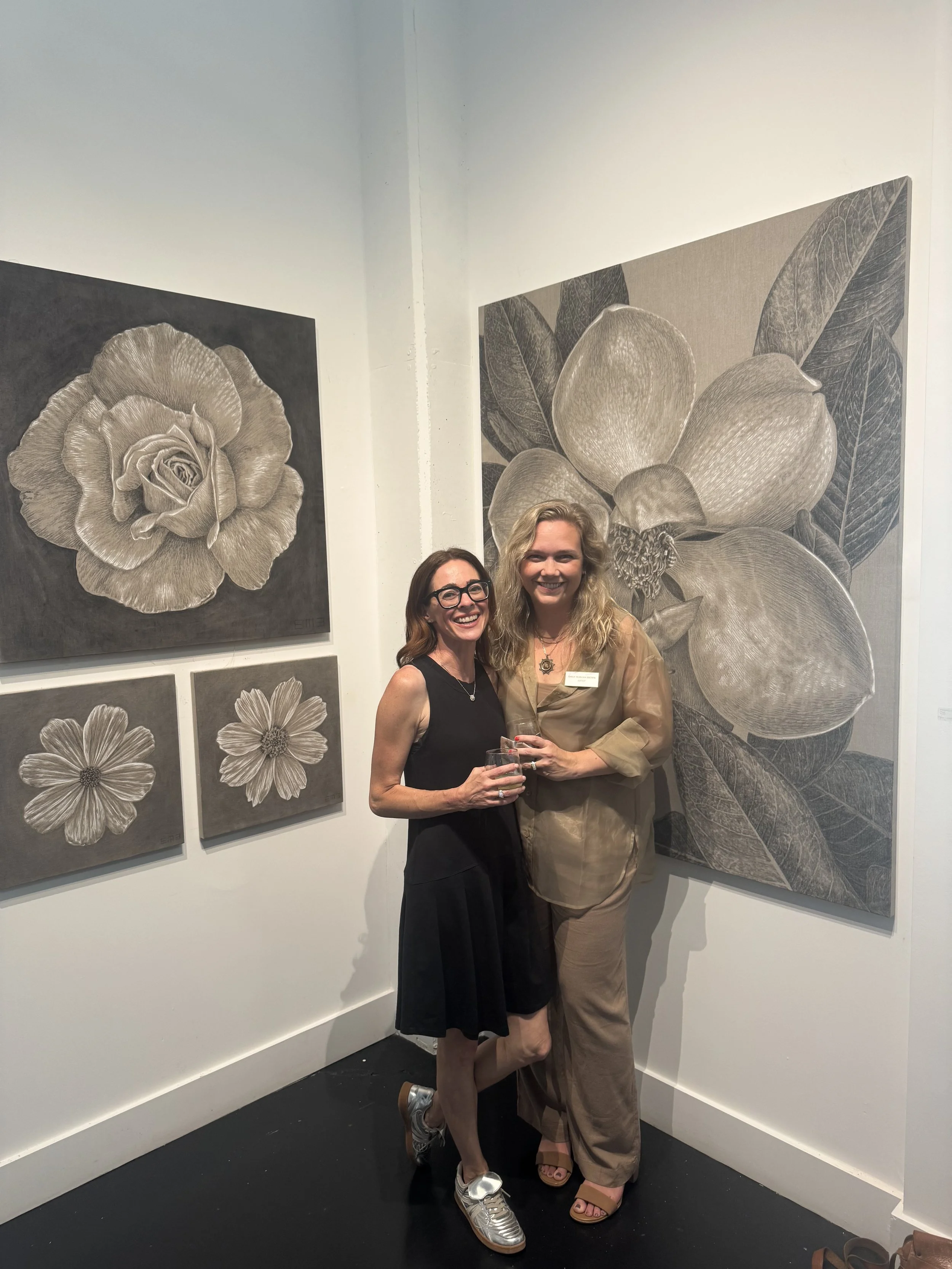 And as if the universe is listening, back in May, I was talking to my friends about Emily and her clouds. Later that day, I hopped on Instagram and saw she was having a showing at a local gallery that night. It honestly felt like a sign. So off I went to meet my Insta friend in person—and she was every bit as lovely as her art. Getting to see her pieces up close and take in their beauty was such a joy.