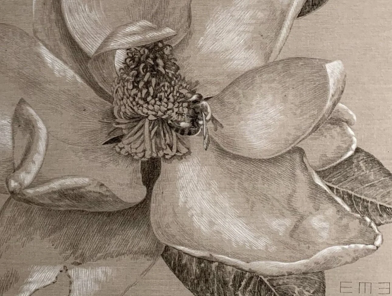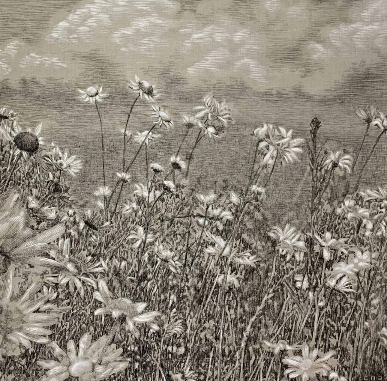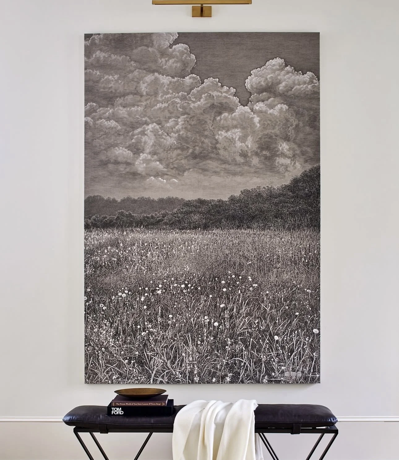 The first works I remember seeing from Emily—even before the clouds—were her bee drawings. Again, that same magic in simplicity. She’ll draw one tiny, perfect bee on a large white sheet of paper, frame it, and somehow it becomes this BIG-impact moment. Pure magic.