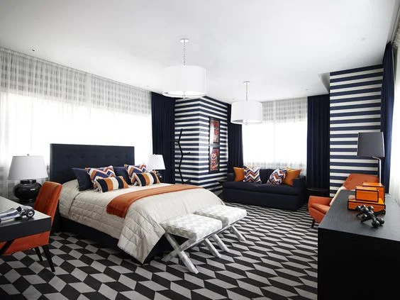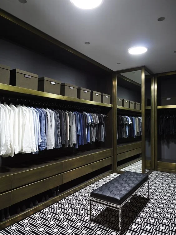 I would say one of the more difficult things to learn as a designer is exactly how much you can add to a space and when to edit a space. There's a fine line with too much pattern, but Greg is able to layer it on without it looking like a "crazy" house. He clearly loves geometrics, black and white, and can design a closet I'm sure Carrie Bradshaw would be jealous of. His spaces are sexy and masculine yet can also pull off a feminine, regency feeling space. And I believe he also has a love affair with chandeliers. I wouldn't be surprised if he comes out with yet another collaboration and designs some over sized, over the top lighting in the near future.